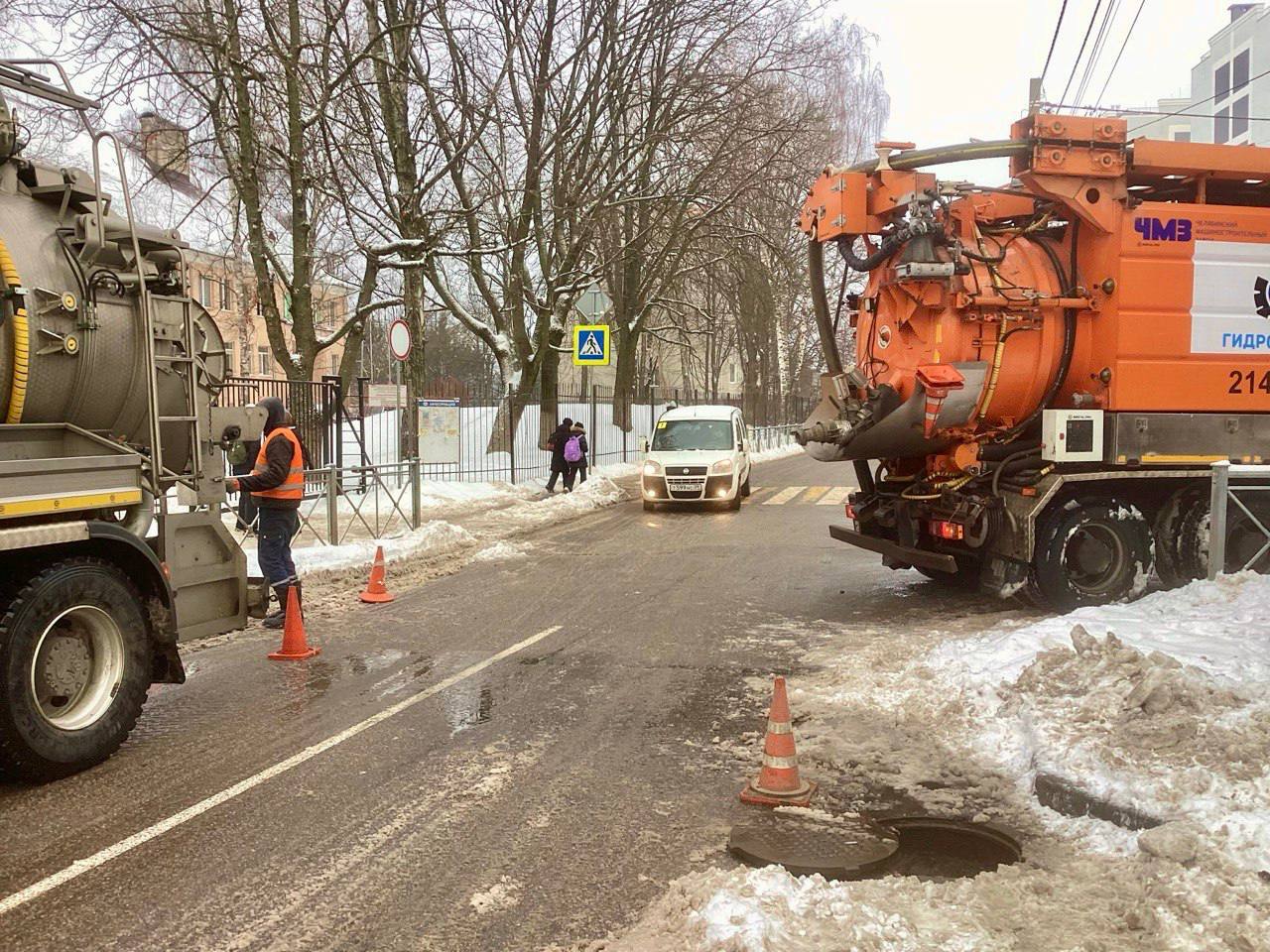 Все эти снежные дни сотрудники Гидротехника трудились также без выходных. Они обеспечивают готовность городских сетей ливневой канализации к таянию снега: диагностируют состояние коллекторов с помощью лаборатории телеинспекции; промывают сети гидродинамическими машинами высокого давления; обслуживают гидротехнические сооружения.