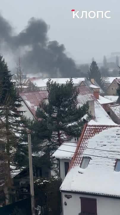 Валит чёрный дым: в Калининграде загорелся склад с краской