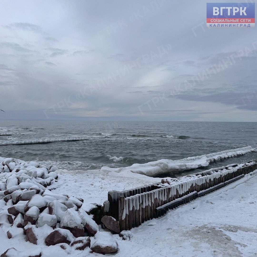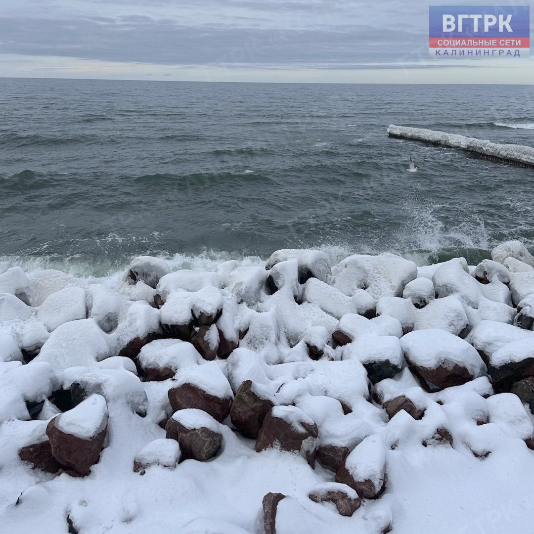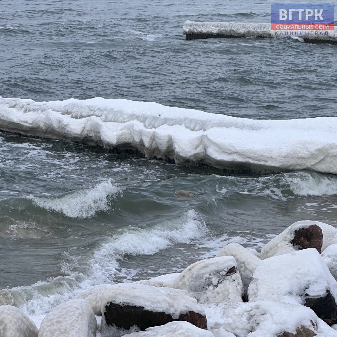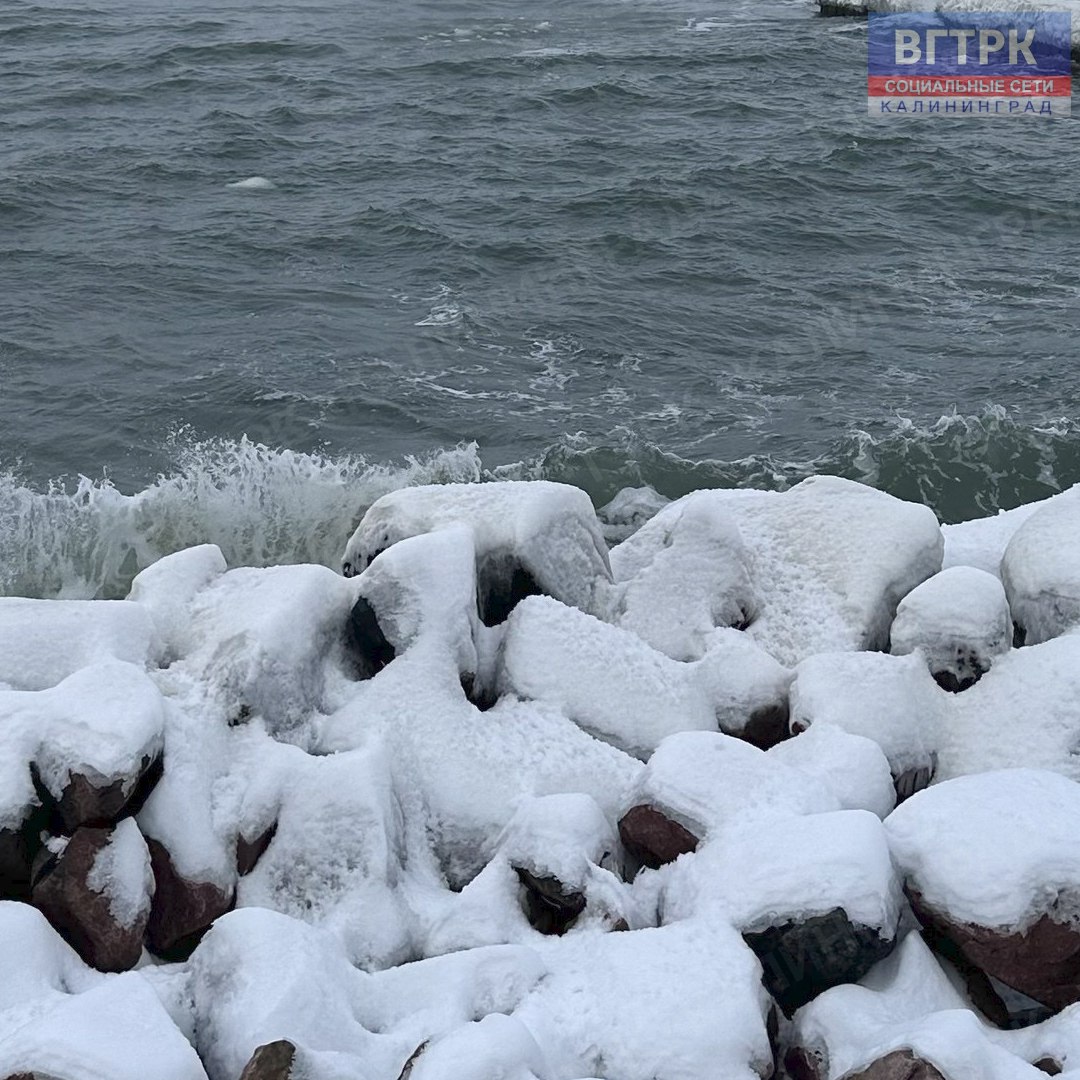 Седые волны Балтики затихают в ледяных объятиях, превращая побережье в застывшую симфонию из инея, камня и морской соли.