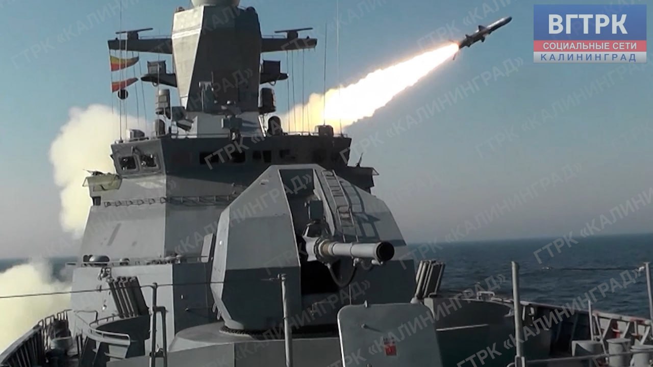 Ракету-мишень запустили с корвета «Бойкий» Балтийского флота. «Буря» ответила залпами ракетно-пушечного комплекса «Панцирь-М».