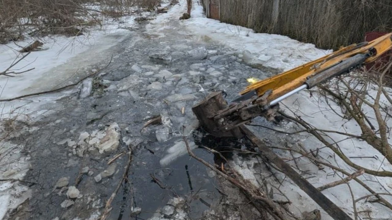 В районе СНТ «Полет» в выгребную яму с водой провалился экскаватор с водителем.