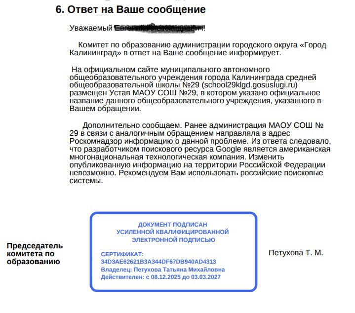 А мы, в свою очередь, информируем Роскомнадзор и советуем пользоваться отечественными поисковиками и мессенджером Max.