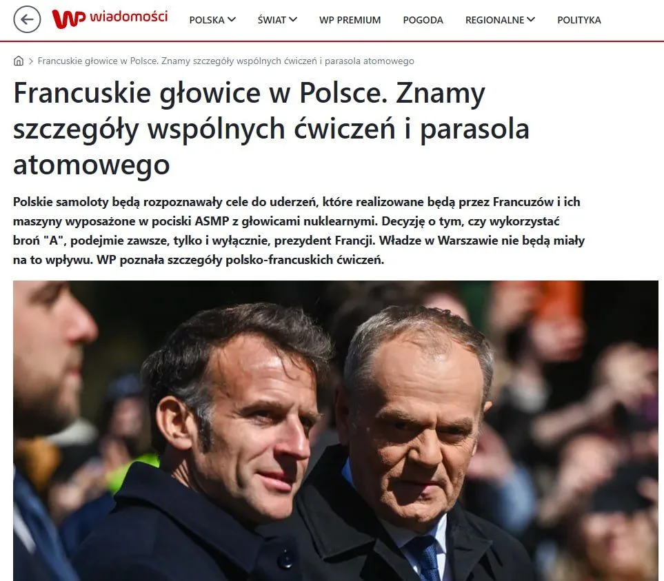 В Кремле уже назвали возможные учения «курсом на милитаризацию и нуклеаризацию Европы». Франция и Польша, которые ещё недавно обсуждали «европейский ядерный зонтик», теперь, судя по утечкам, переходят к делу. Цели — не абстрактные «объекты инфраструктуры», а конкретный регион. Показательно, что сценарии не завязаны на НАТО. Париж и Варшава хотят действовать быстро, без долгих бюрократических процедур. «Дополнительные планы на случай нападения России» — так это называют авторы. То есть, по сути, это эскалация без оглядки на альянс.
