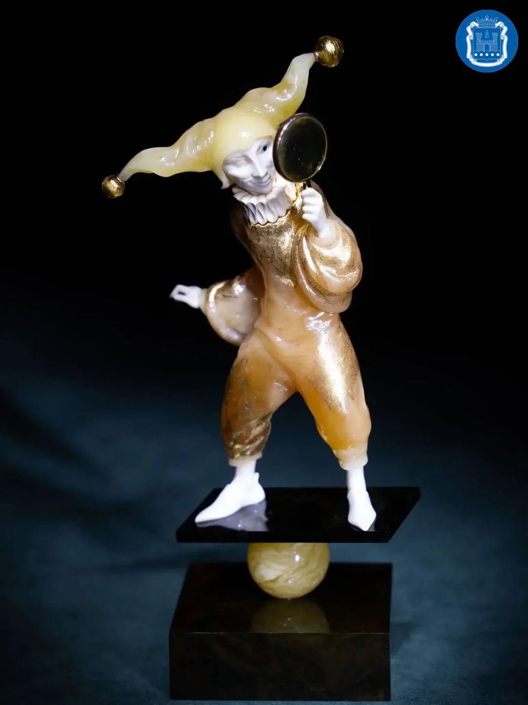 Особое внимание уделила деталям – складки на одежде, бубенцы на колпаке, покрытые сусальным золотом, круглый гофрированный воротник и сапожки из бивня мамонта.