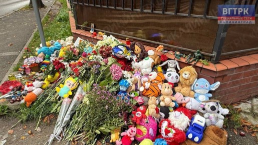 На месте, где совсем недавно оборвалась жизнь школьника под колёсами грузовика, теперь народный мемориал. В этом уголке бережно уложены мягкие игрушки и цветы в память о погибшем ребёнке.