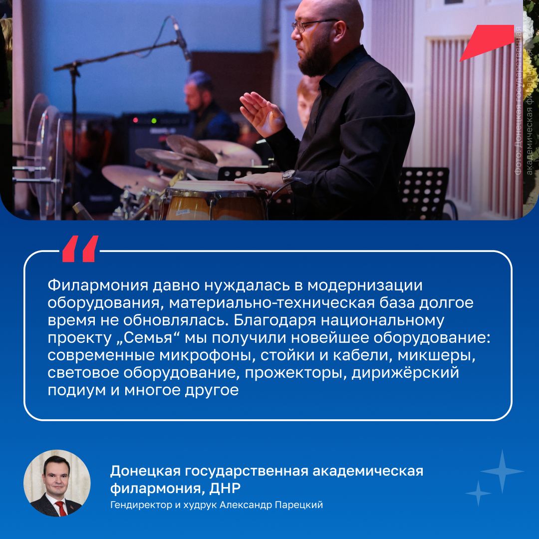 Концертные площадки модернизируют при поддержке нацпроекта «Семья». До конца 2030 года в стране обновят 89 филармоний.