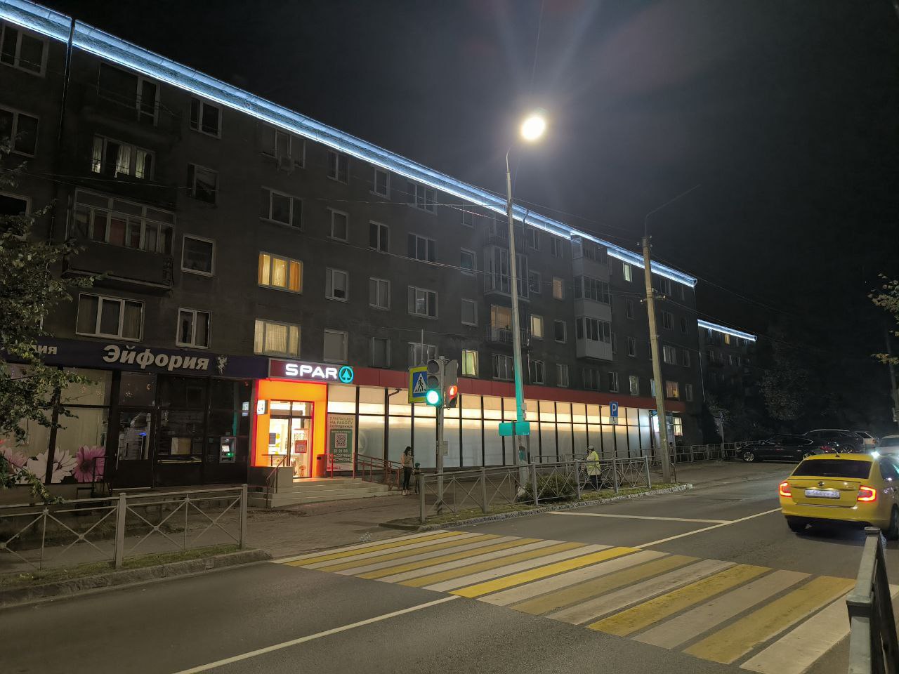 Отчётные фотографии с мест завершения работы разместил в социальной сети глава администрации Советска Аркадий Данилов. Дома №1 и №1а на Калининградском шоссе, находящиеся у парадного въезда в город с юга, теперь сияют в тёмное время суток, создавая предновогоднюю атмосферу.
