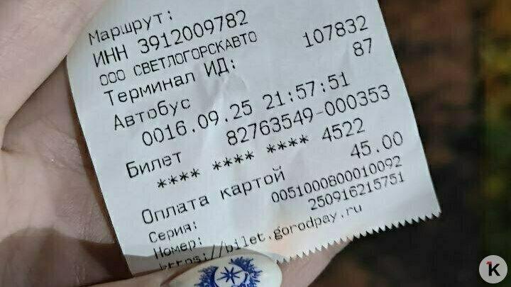 «Вечером светлогорский автобус взял пассажиров от Северного вокзала и помчался, не остановившись у ТЦ «Гранд». Высадил людей в районе заправки «Сургутнефтегаза» в конце Советского проспекта. Пришлось идти пешком, а деньги не вернули никому», — жалуется Алёна.