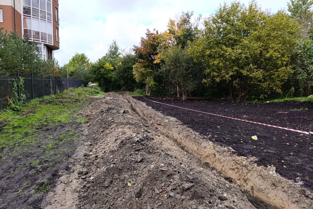 Специалисты уже прокопали траншею для кабелей освещения. После прокладки коммуникаций начнут делать дорожку из бетонной плитки. Работы планируют завершить до конца ноября.