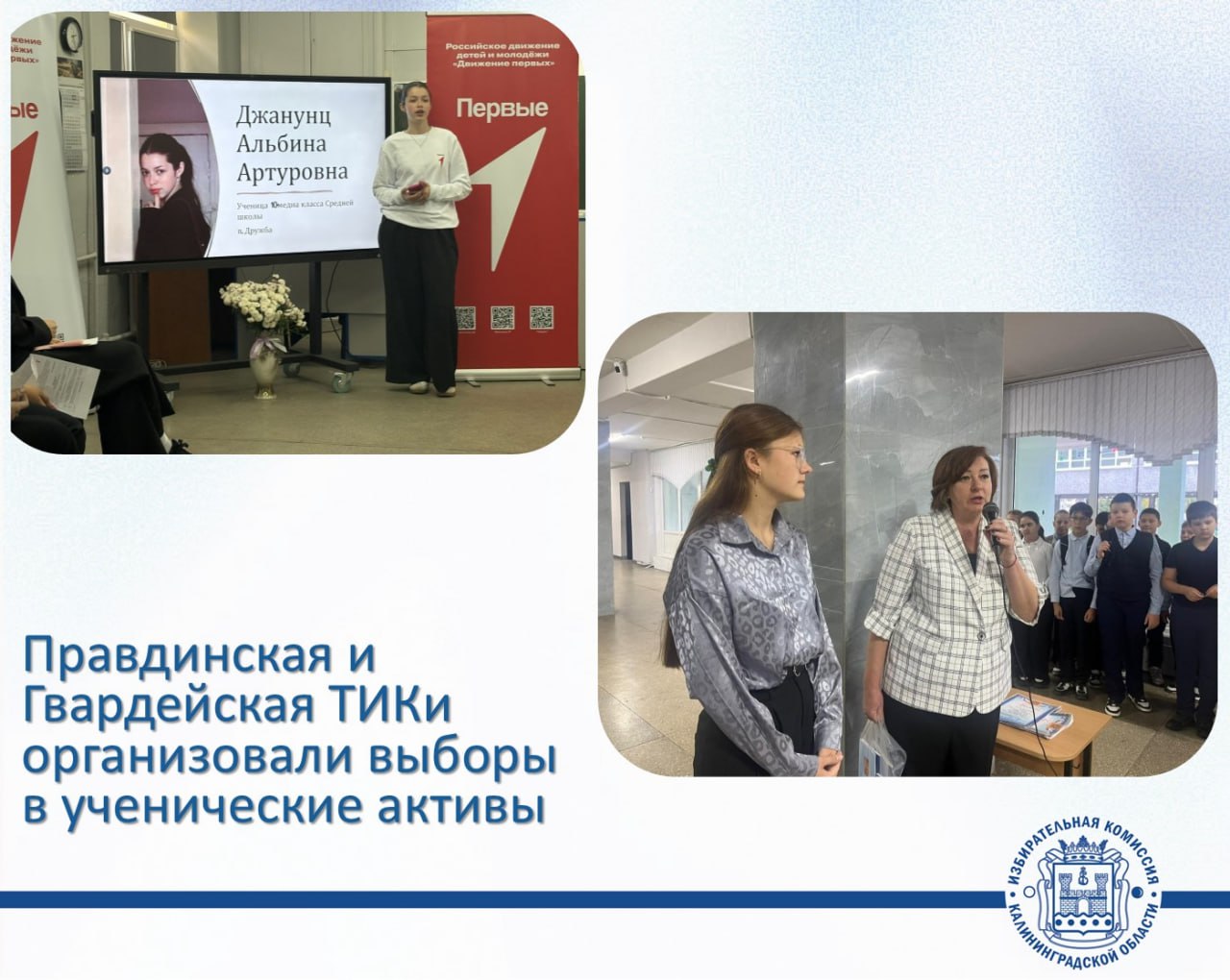 Накануне в Правдинском округе прошли выборы председателя местного Совета первых («Движение первых»). А в Гвардейском округе учащиеся школы №2 им. А. Круталевича выбрали президента школы.