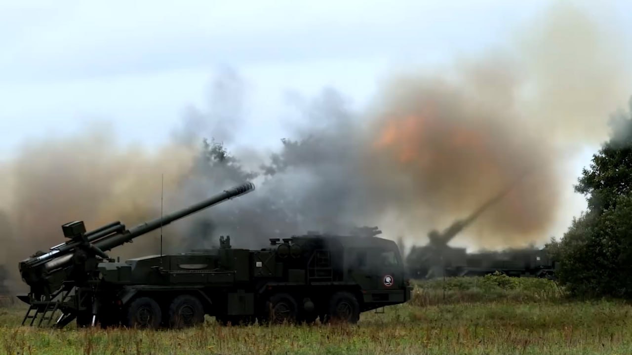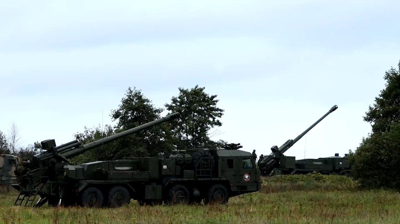 Резервисты в Калининградской области также успешно освоили и применили на полигоне новейшие 152-мм самоходные гаубицы "Мальва" и "Гиацинт-К" на колёсном шасси БАЗ-6910-027 "Вощина", кадры Минобороны РФ.