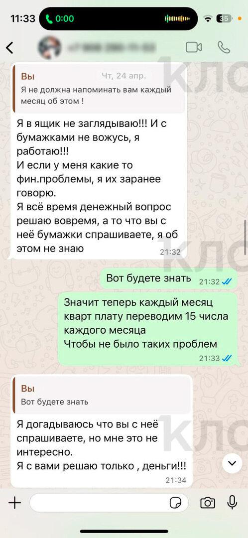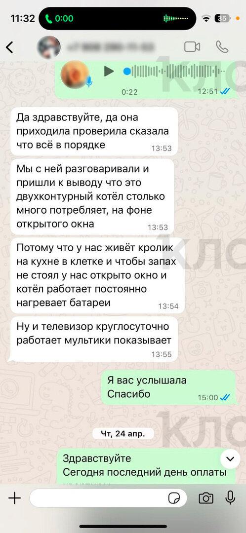 Обогреватель у клетки животного стал причиной огромных счетов — до трёх тысяч рублей в месяц. Семья всё оплачивала, но с постоянными задержками. После выселения Анна попыталась связаться с бывшими жильцами, чтобы обсудить возмещение ущерба, но разговор закончился грубо.