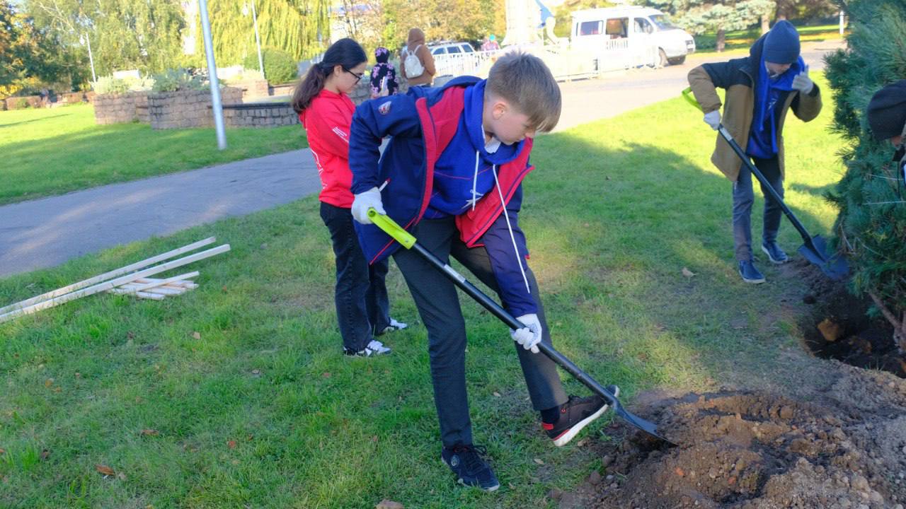 Сегодня в сквере на ул. Шевченко состоялась особенная акция: активисты из «Движения первых», ребята из программы «Герои 39», а также дети, потерявшие своих близких в зоне специальной военной операции, участники проекта «Крепкое плечо» приняли участие в высадке деревьев.