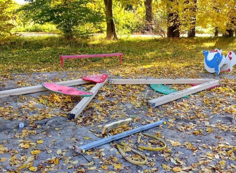 Как сообщает местная администрация в Новосёлово какие-то люди под ноль разломали детские качели. А в Корнево потерпела от чьих-то рук, возможно, и ног детская карусель.