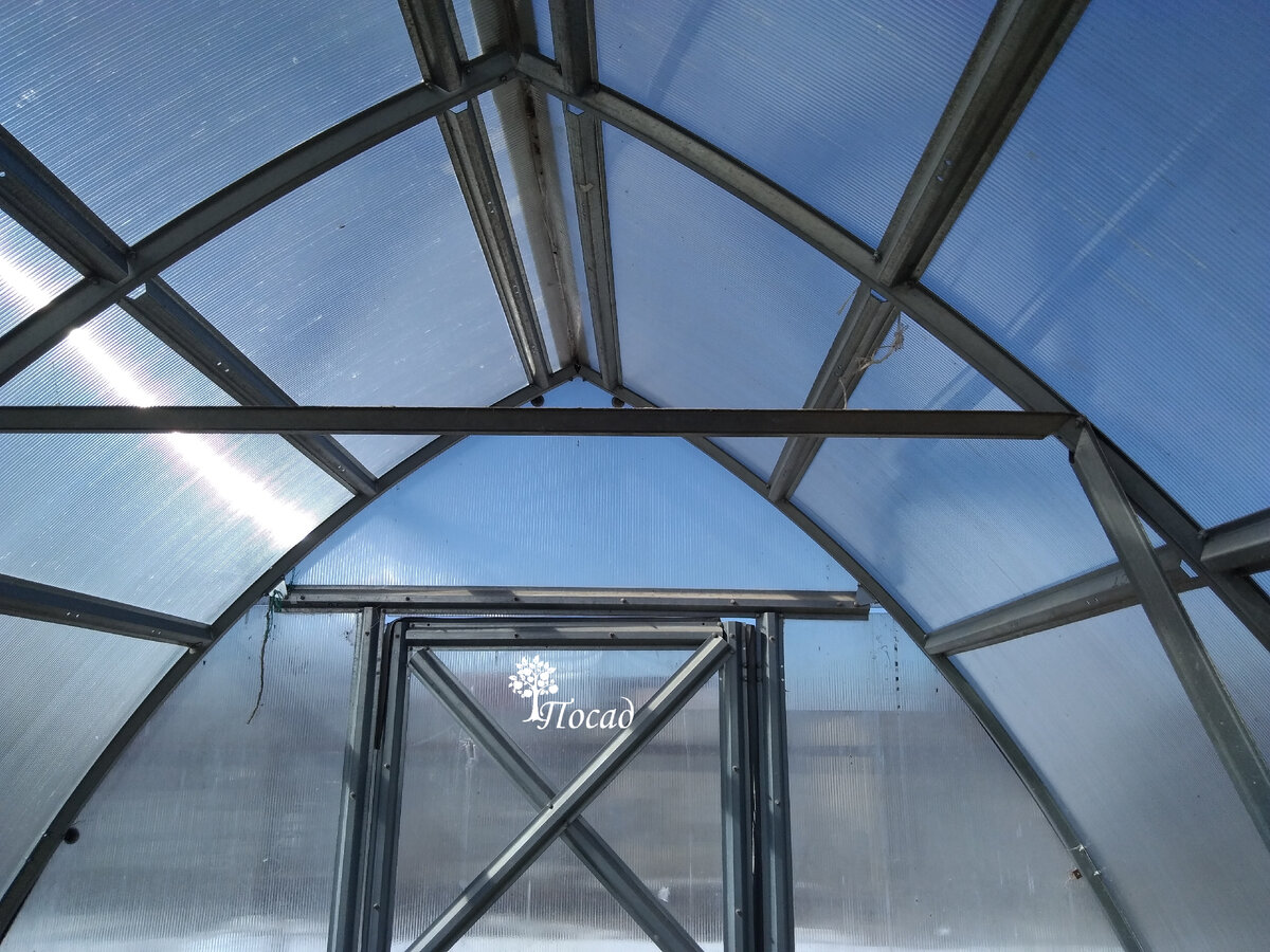 - Установка подпорок: Т-образные подпорки под дуги — это один из самых рациональных способов защиты. Они должны быть установлены так, чтобы поддерживать дуги, к которым крепится поликарбонат. Последовательность действий проста: необходимо подвести подпорки под крышу теплицы, используя доску-дюймовку, что позволит защитить конструкцию от значительных нагрузок снега.