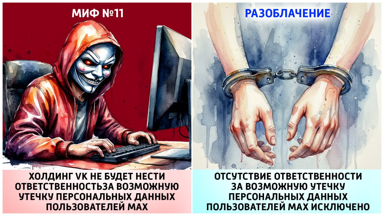 Распространяется ложное мнение о том, что холдинг VK не будет нести ответственность за возможную утечку персональных данных пользователей MAX, поскольку его оператором является «фирма-однодневка» – ООО «Коммуникационная платформа».