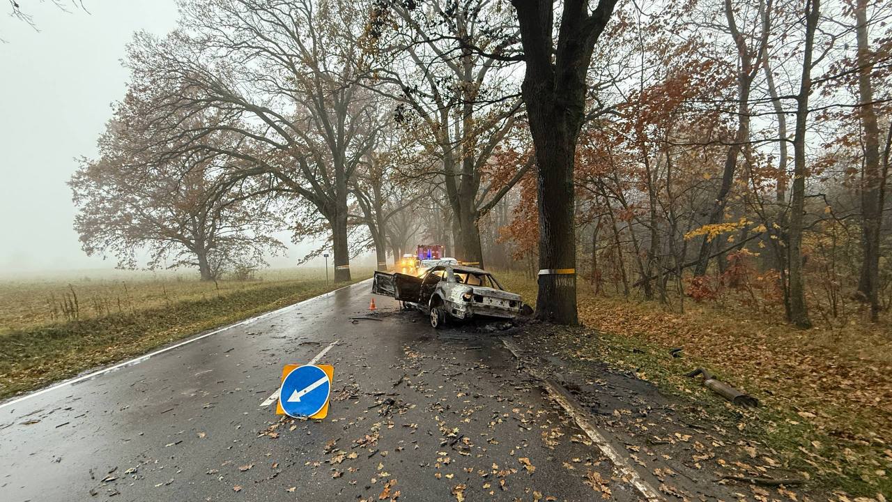Всё произошло 3 ноября в районе пяти часов утра. 24-летний водитель «Ауди» врезался в дерево. От удара машина загорелась. На месте погибли сам автомобилист и 21-летняя девушка.