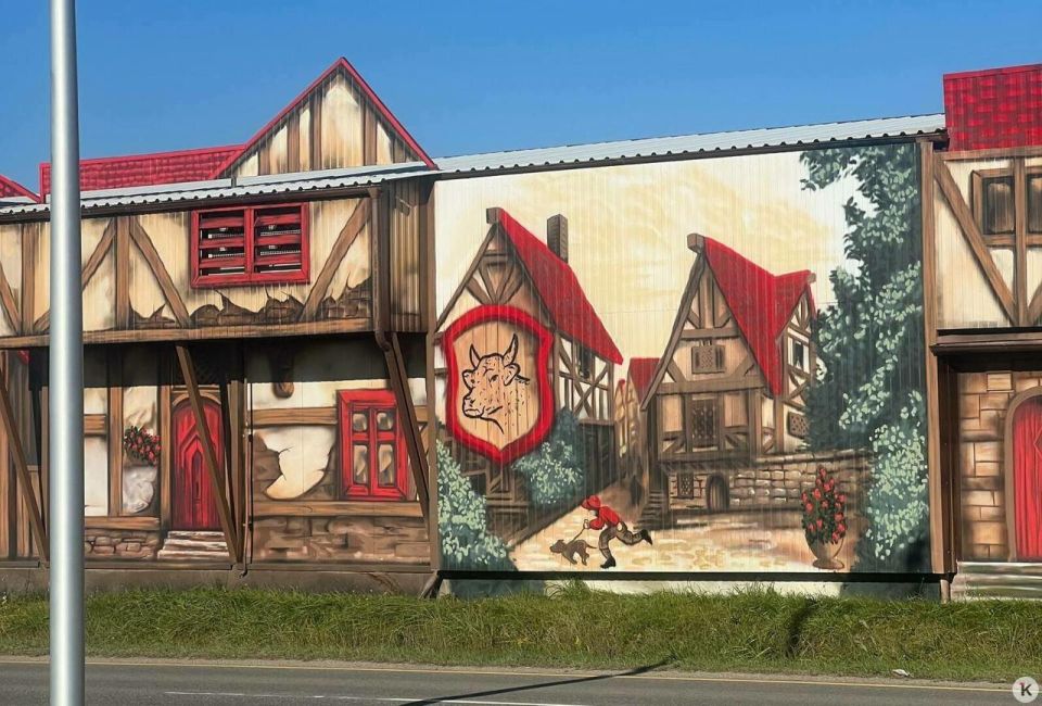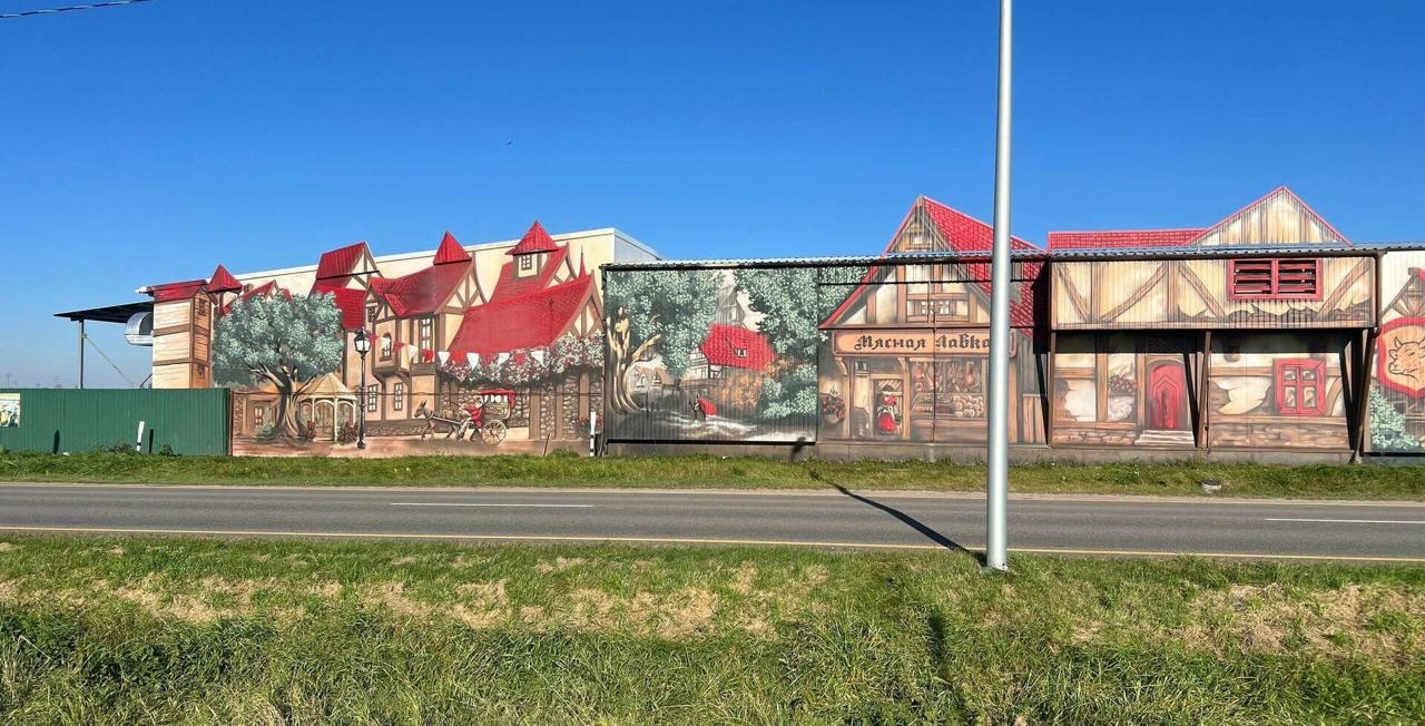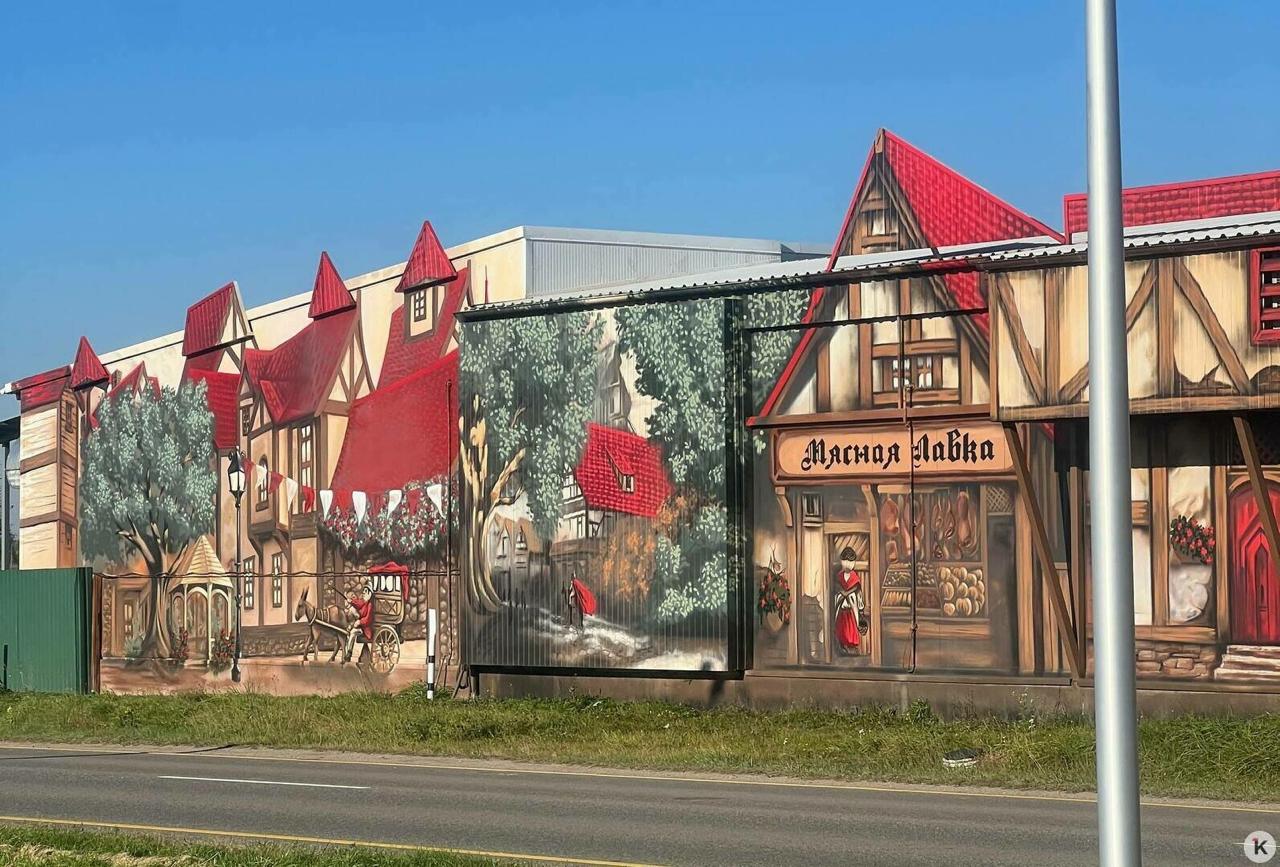 Новый мурал на стене вокруг комплекса мясокомбината в Поречье закончили калининградский граффитист Кирилл Гейнц.