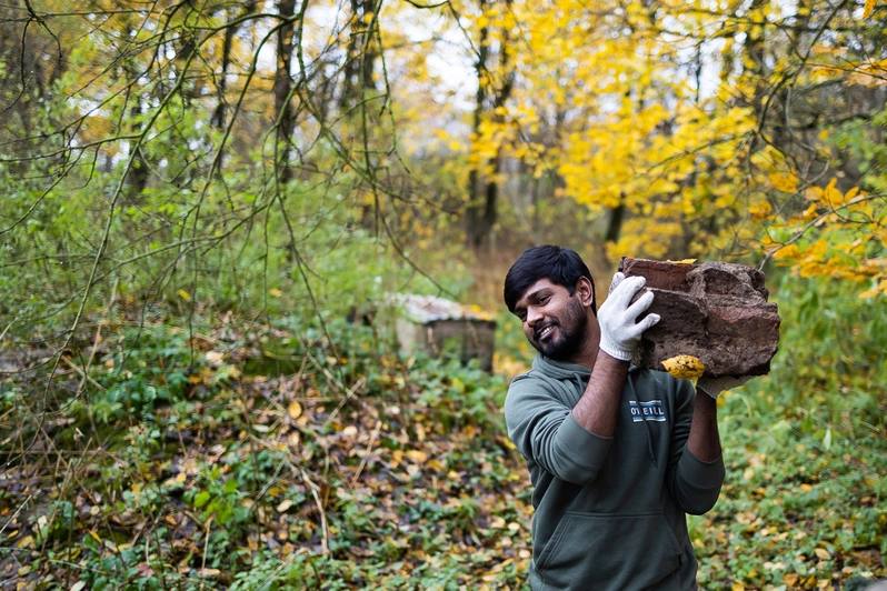 Сначала ребят переодели в специальную одежду, выдали сапоги и инвентарь. Работа закипела.