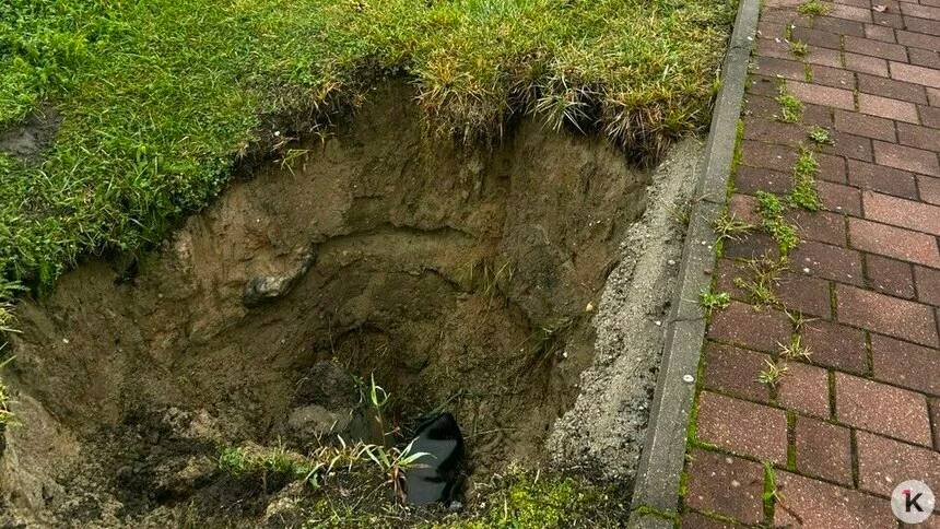 По словам читательницы Олеси, глубина «кратера» составляет около двух метров.
