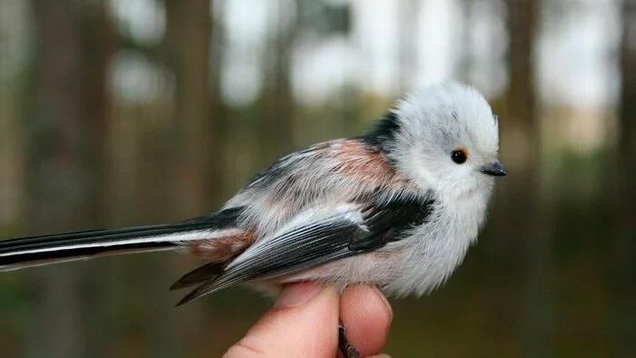 Длиннохвостая синица — меньше воробья. Когда она сидит на ветке, втянув голову, похожа на белый пушистый шарик с глазками-бусинками, коротким клювом и очень длинным хвостом. Из-за этой несимметричности в народе её прозвали ополовником.