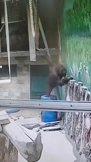 На кадрах видно, как орангутан отрывает деревянную балку. По словам сотрудников зоопарка, за 10 минут он успел демонтировать отделку половины стены.«Как чувствовал, что у строителей по плану к следующему сезону обновление декора в уличном вольере....