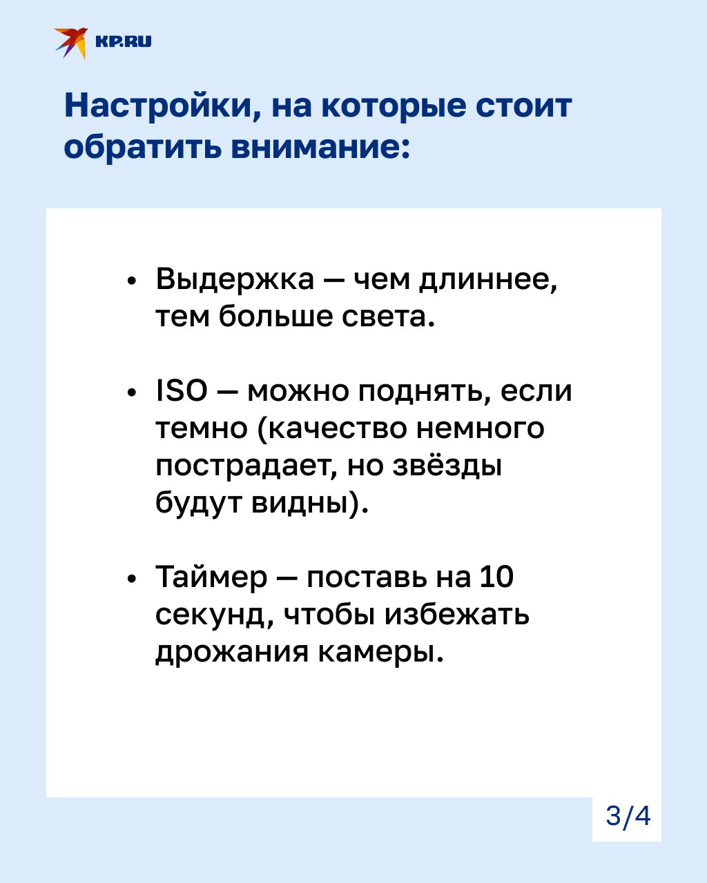 Магнитные бури всё чаще приносят в наши широты полярное сияние. Но в небе происходят и другие интересные события: суперлуние или метеорные потоки. Как сфотографировать явление, чтобы снимки точно получились? Ответы в наших карточках.