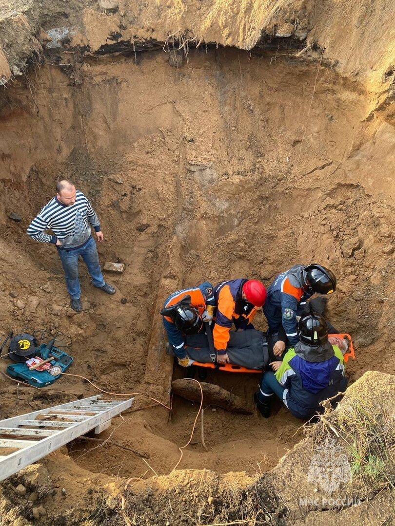 Сотрудники ПСО МЧС вместе с городскими спасателями достали пострадавшего при помощи альпинистского снаряжения и трёхколенной лестницы. На жёстких носилках мужчину передали медикам.