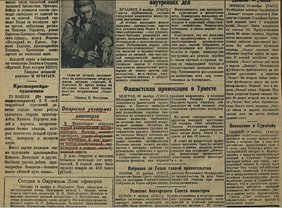В ноябре 1945 года в советском Кёнигсберге появился первый универсальный магазин военторга