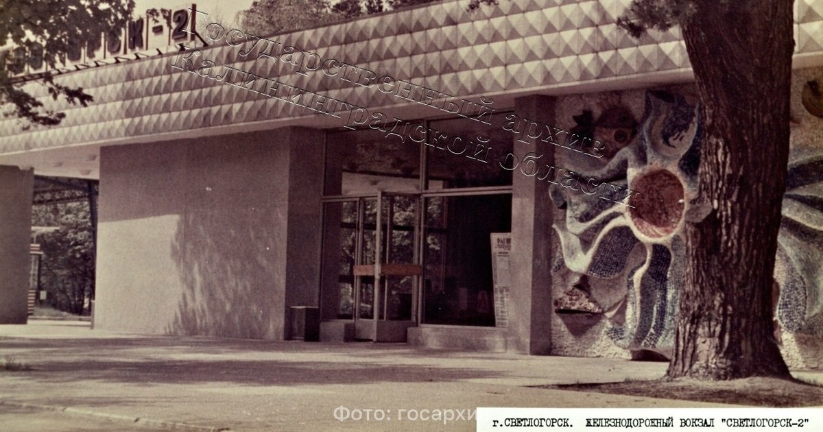 Авторами декоративно-монументальных мозаичных рельефов на фасаде вокзала были художники: Николай Фролов, Олег Атрощенко и Альберт Шестаков. Они были приняты комиссией 3 марта 1976г. с оценкой «отлично». Здание вокзала работало 30 лет. «Но в 2006г. Калининградская железная дорога начала реконструкцию станции, в ходе которой было построено и новое здание вокзала, и реконструирована посадочная платформа», — говорится в сообщении.