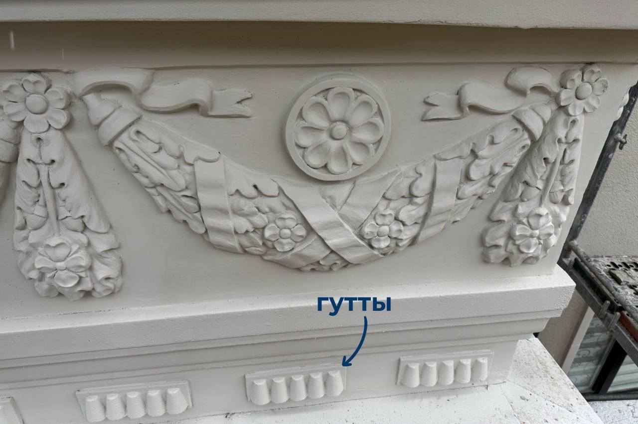 Цветочная лепнина, гирлянды, розетки, капители и даже маленькие гутты — всё вернулось на Красную, 29А-35А. Благодаря 3D-сканированию и ручной доработке мастеров каждый воссозданный элемент сегодня выглядит так, как задумывал советский архитектор, — рассказали в Фонде капремонта.