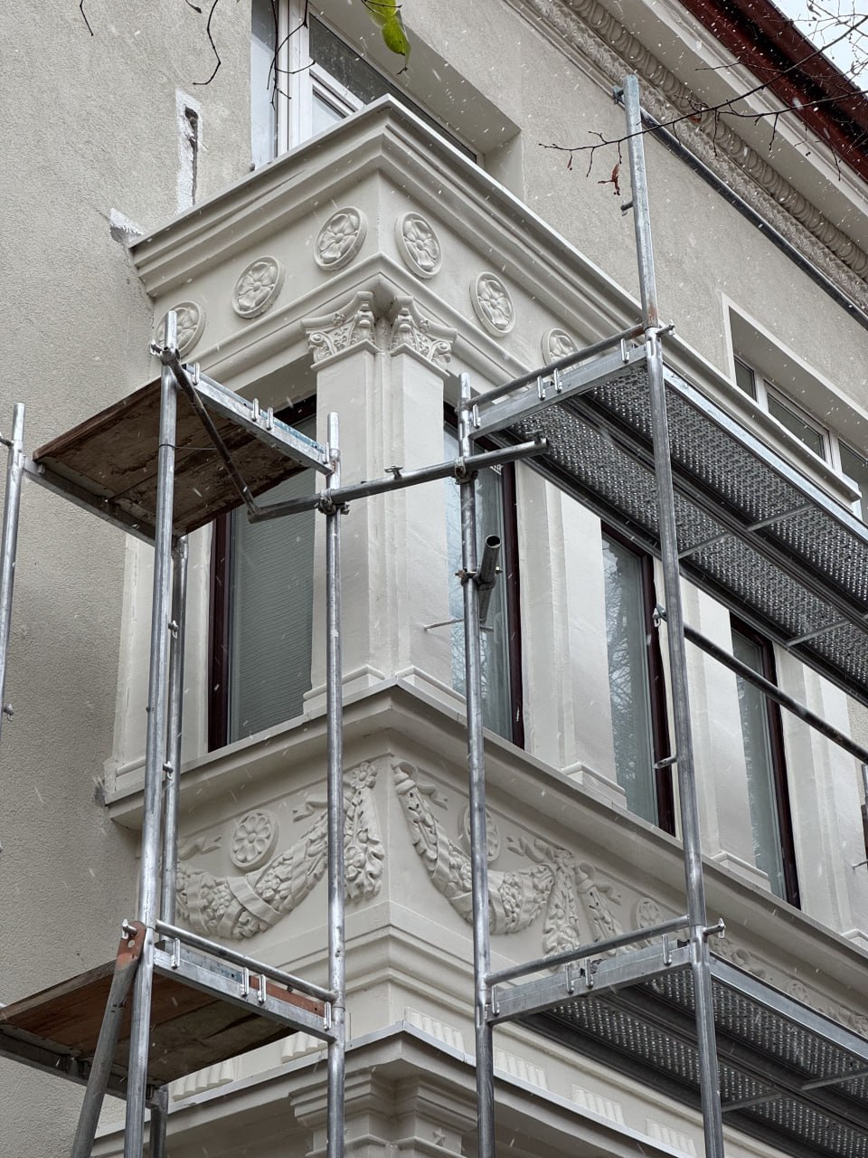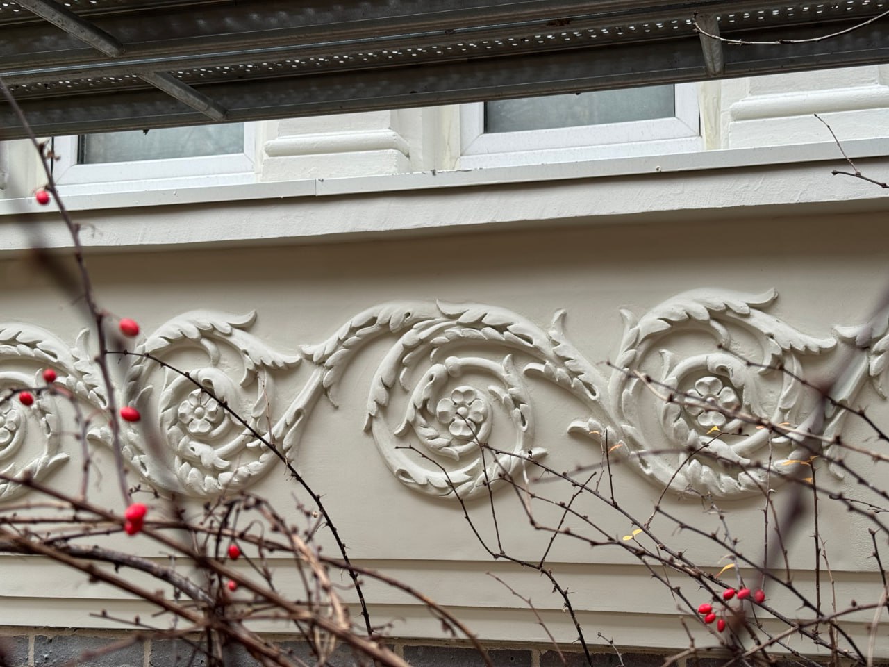 Цветочная лепнина, гирлянды, розетки, капители и даже мелкие декоративные детали снова на фасаде — их воссоздали с помощью 3D-сканирования и ручной работы мастеров. Теперь всё выглядит так, как задумывал архитектор.