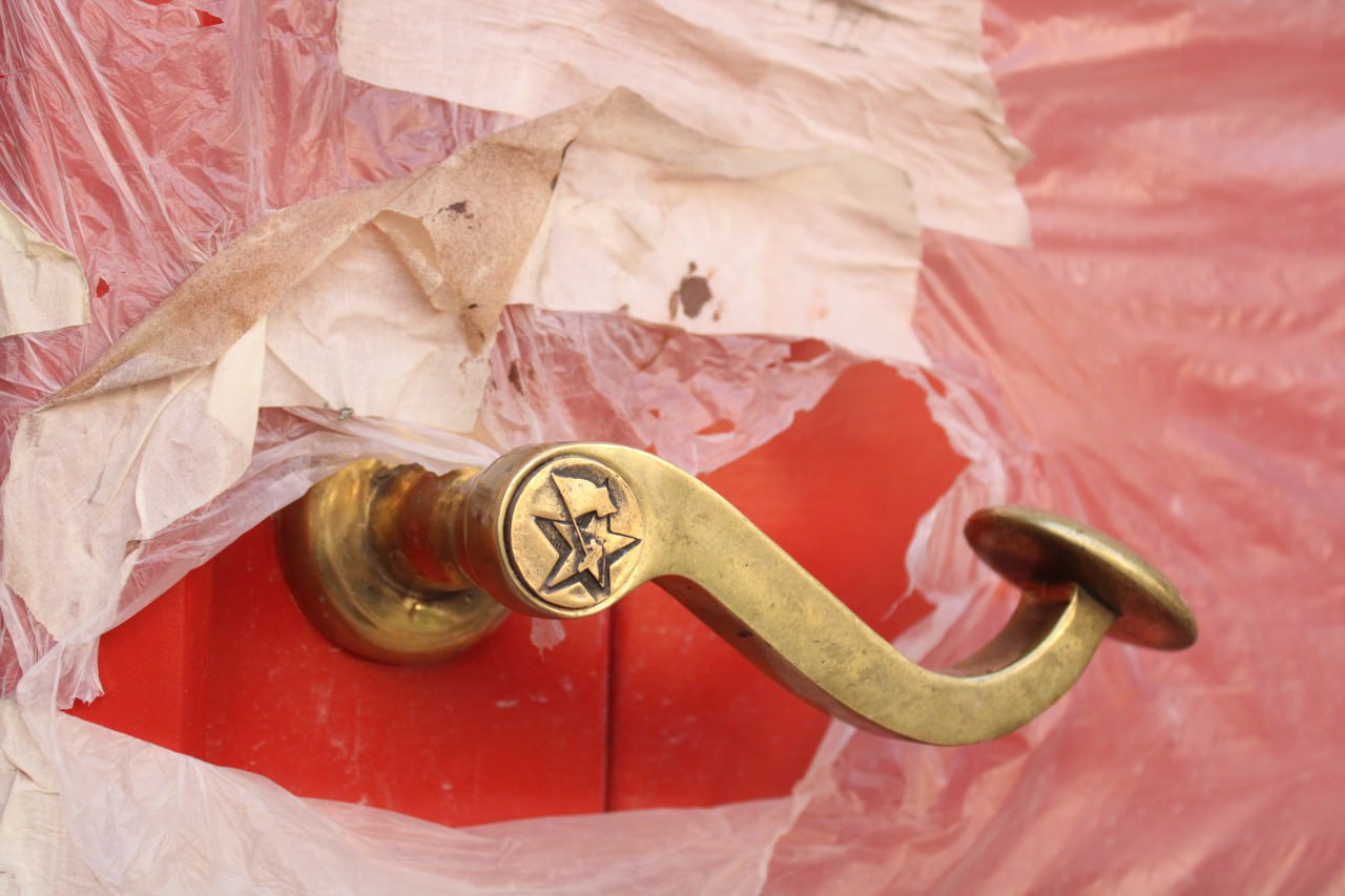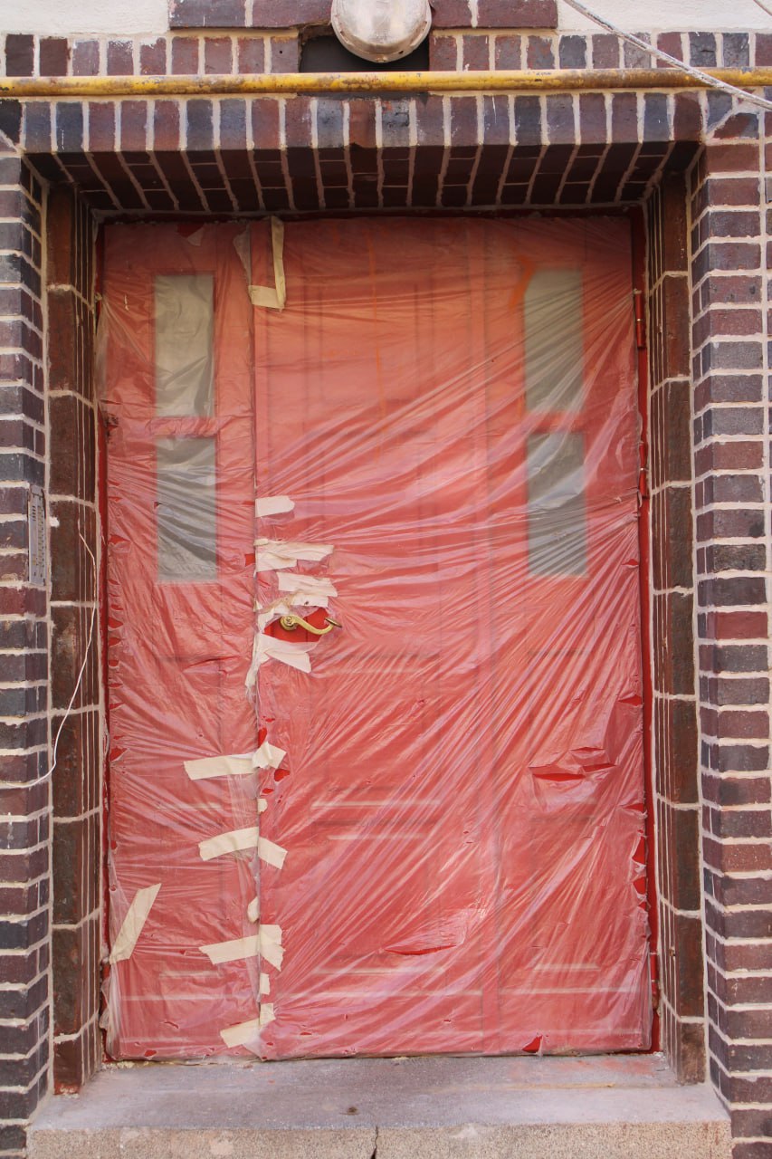 Ремонт выходит на финиш: осталось устранить мелкие недочёты, прошлифовать поверхности и установить ограждения на балконах. Новые входные двери уже стоят, их пока защищает плёнка.