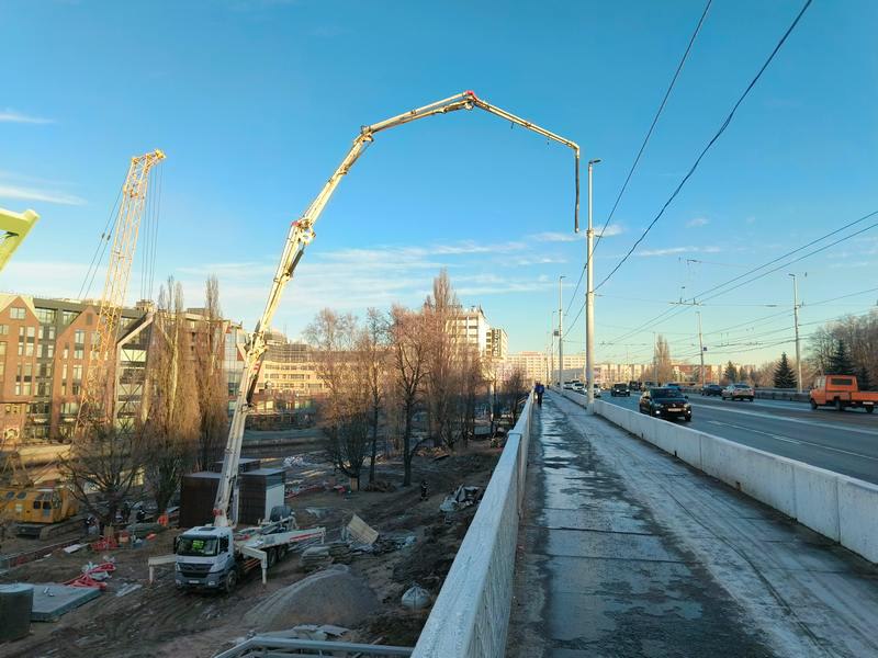 Зачем над эстакадным мостом в Калининграде повесили бетононасос