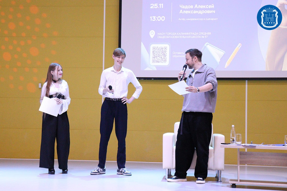 В калининградской школе № 57 прошла встреча с актёром и кинорежиссёром Алексеем Чадовым.