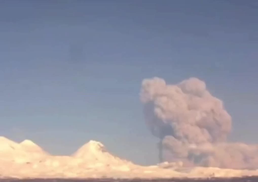 В соцсетях вирусится ролик, на котором Безымянный выбрасывает столб пепла на высоту 5,5 км. Это страшно красиво.