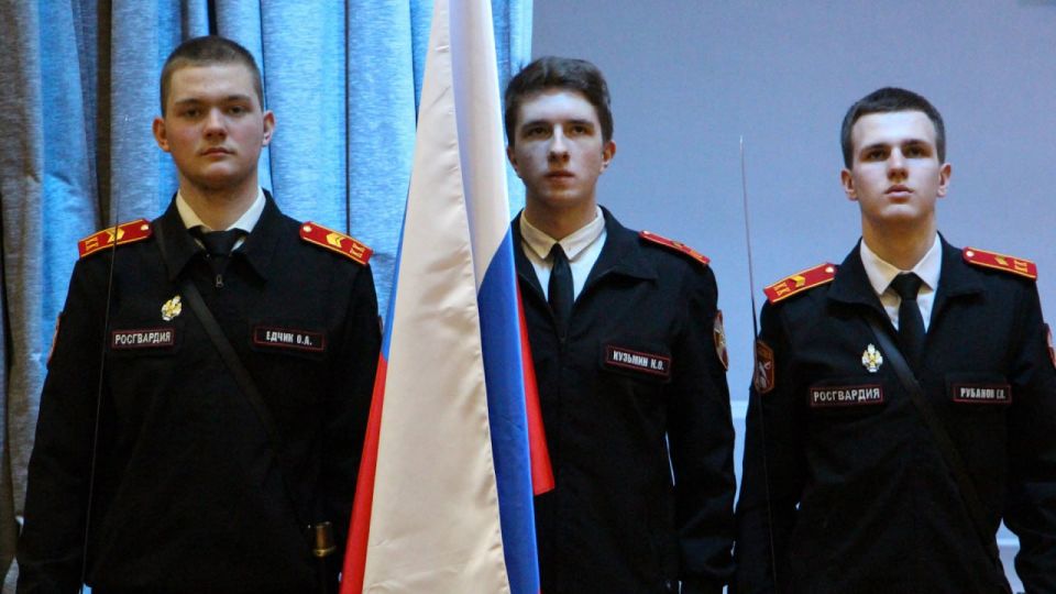 В калининградской гимназии № 22 состоялась торжественная церемония посвящения в кадеты Росгвардии. 14 гимназистов присягнули на верность Отечеству. Кадетские погоны школьникам вручили врио заместителя начальника регионального Управления Росгвардии по военно-политической работе и председатель ветеранской организации ведомства полковник полиции Владимир Рева.
