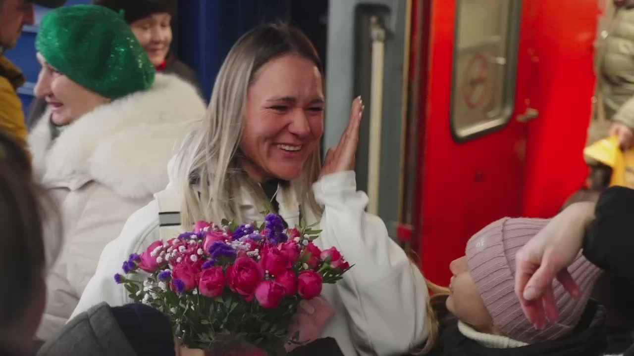 На Южном вокзале четырёхкратную победительницу Олимпиад для людей с нарушением слуха встретили друзья, спортивные руководители и дочка.