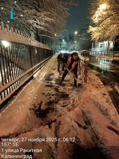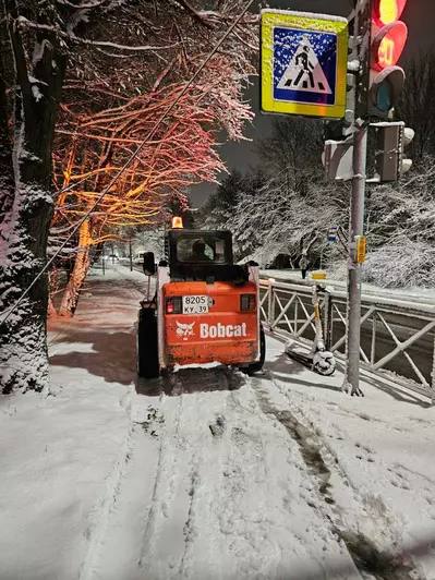 Дорожники работали на заснеженных улицах Калининграда всю ночь, к 4:00 вышли дворники — Дятлова