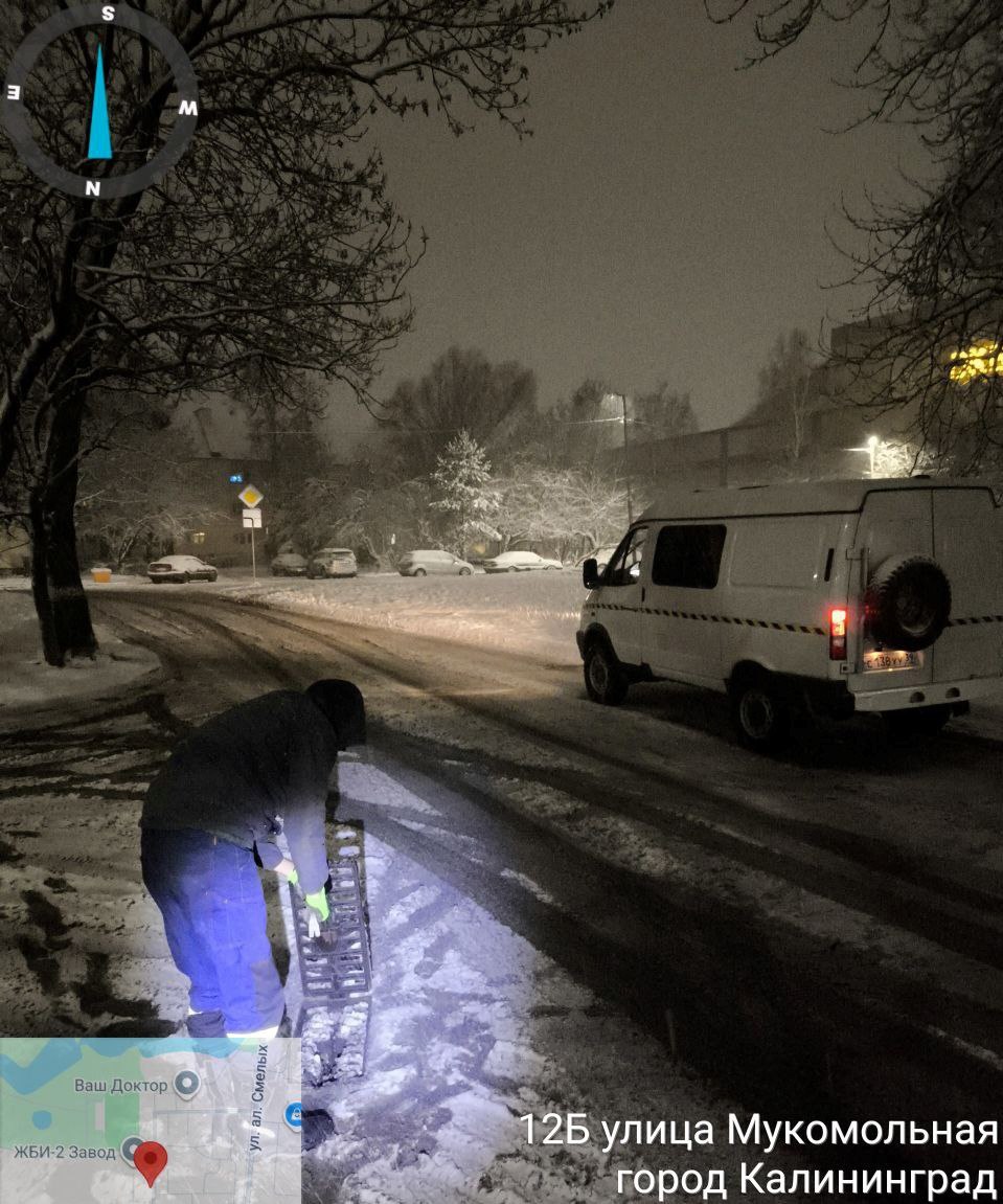 Муниципальное учреждение «Гидротехник» занимается, по данным властей Калининграда, расчисткой дождеприёмных колодцев от льда и снега.