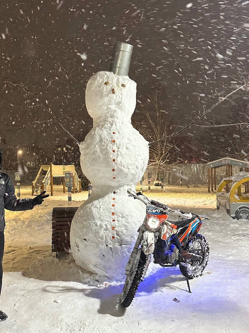 Гигантская фигура появилась в разгар снегопада, прошедшего в предыдущие сутки, на благоустроенном пространстве рядом с администрацией района по улице Юбилейной.