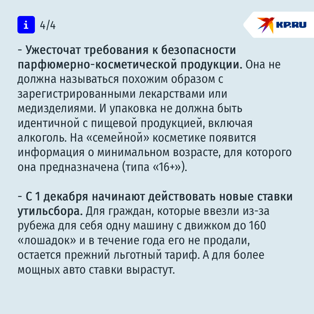О других изменениях декабря — в карточках «Комсомолки».