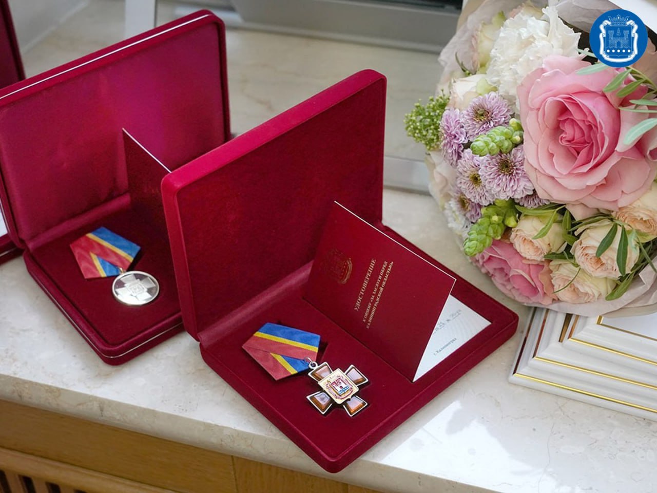 Медали «За заслуги перед Калининградской областью» вручили шоссейной велогонщице Алисе Бондаревой и её тренеру Григорию Мельникову.