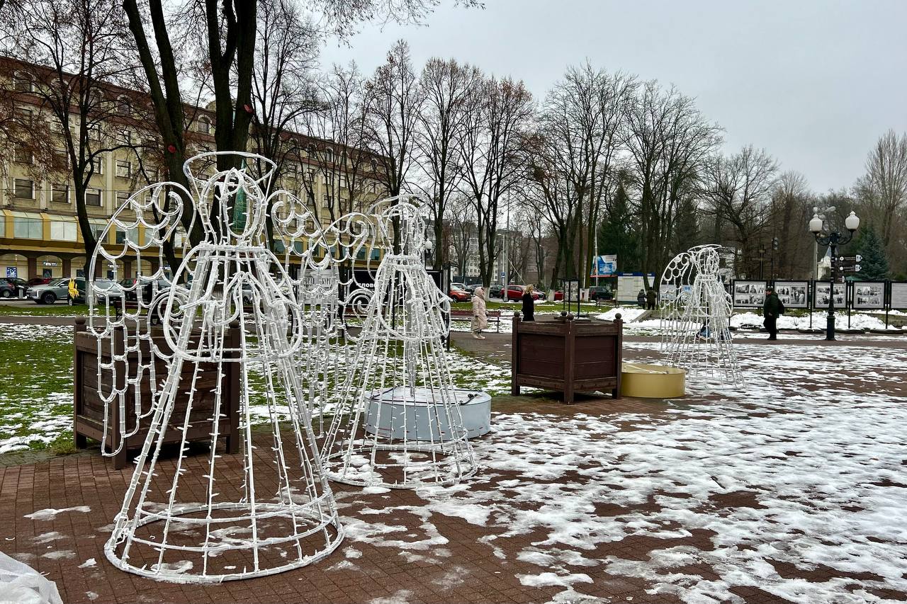 В центр города привезли праздничные конструкции. На площади устанавливают световые инсталляции.
