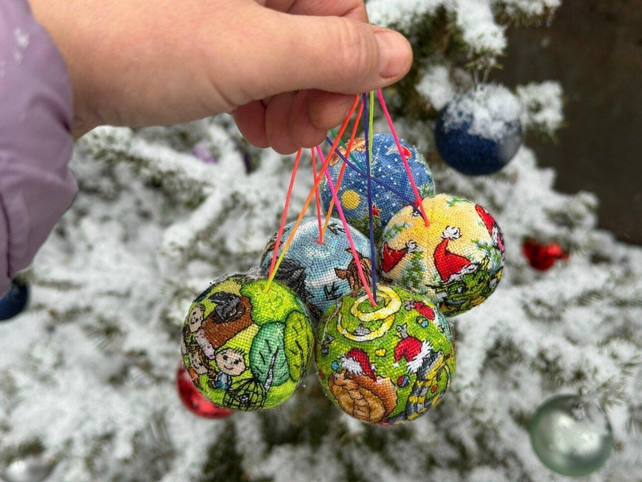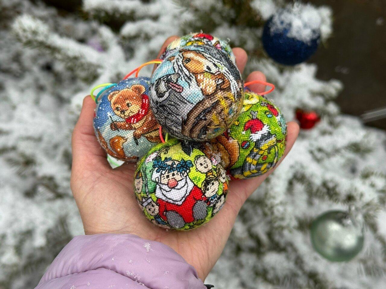Калининградка вышила ёлочные шары в стиле советских мультиков и открыток