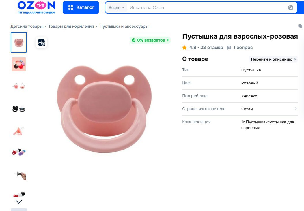 Тренд пришёл из Китая и соцсетей — там ролики с «взрослыми детьми» стали вирусными. Люди показывают, как сосут пустышки в машине, на работе или дома и говорят, что это помогает расслабиться и почувствовать себя в безопасности. Бизнес тут же подхватил волну: в продаже появились пустышки специального размера и дизайна, в том числе и на российских маркетплейсах.