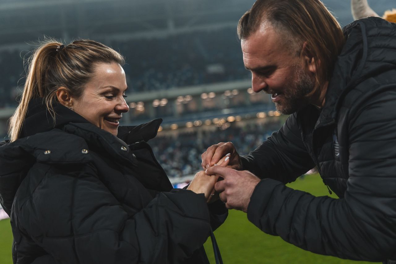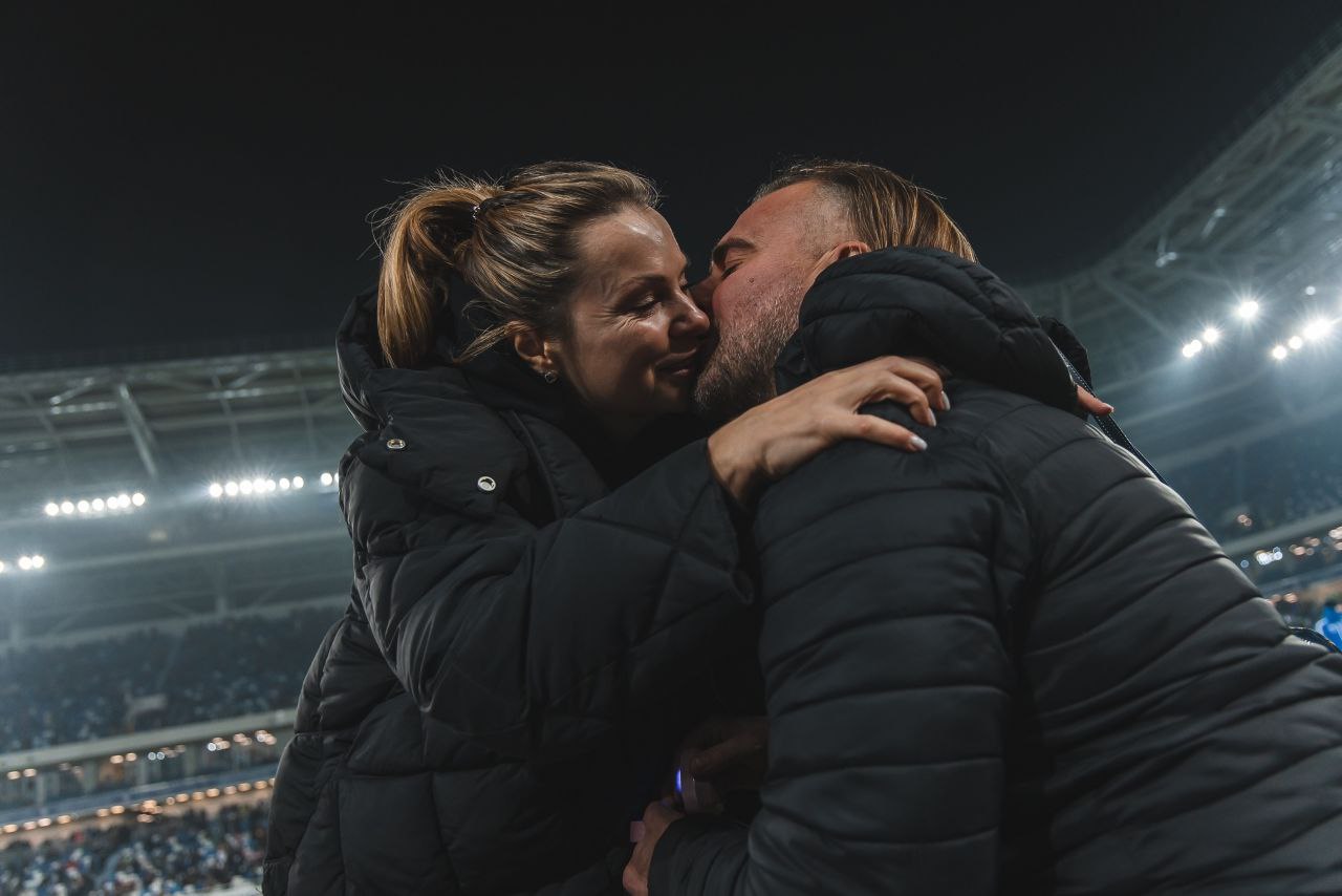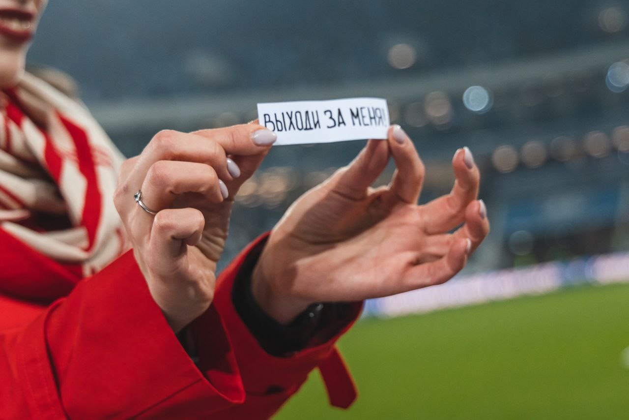 На прошедшем матче между «Балтикой» и «Спартаком» тренер по физподготовке академии калининградского клуба Денис Архипов сделал предложение своей девушке И получил заветное: «Да!»