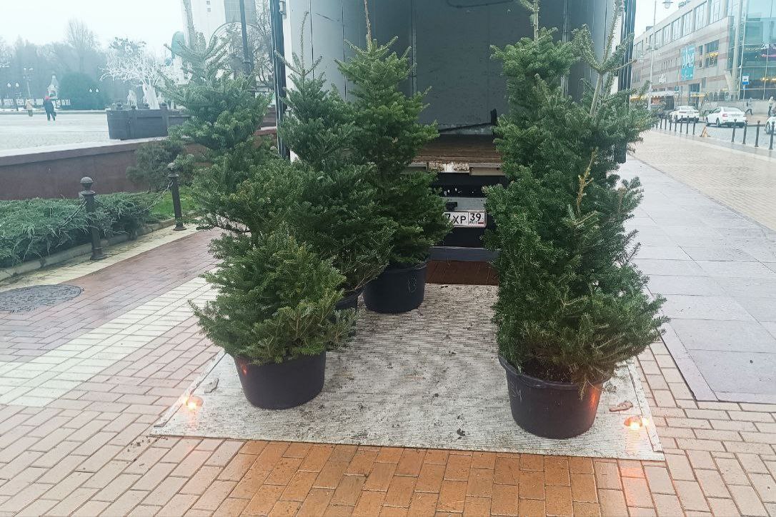 В центре Калининграда начали устанавливать пихты в кадках.