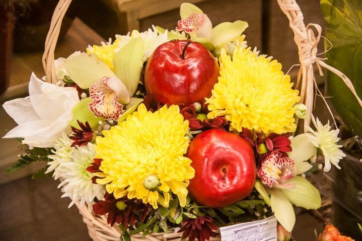 Букет свежих цветов не должен находиться рядом с фруктовой тарелкой.