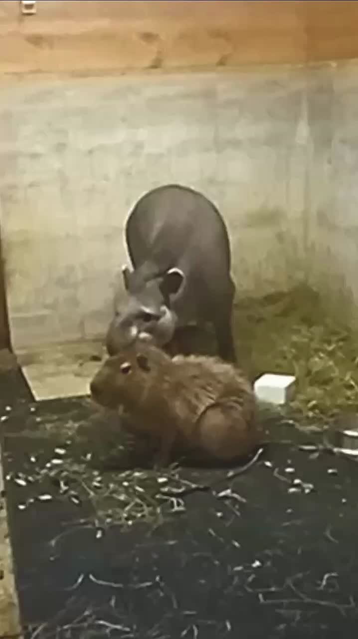 В Калининградском зоопарке показали «слюнявую, но искреннюю дружескую любовь» тапира и капибары